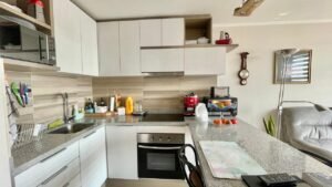 - Cocina: Refrigerador, microondas y dos sillas